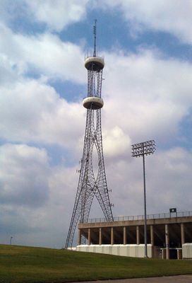 Der Mast wurde 1990 von der Landmark Tower Company aus Fort Worth gebaut und basierte auf einem Design-Konzept, das auf eine Fischzeichnung auf einer Serviette zurückgeht. Dieses ungewöhnliche Ursprungskonzept führte zu einer innovativen Konstruktionsweise für die damalige Zeit.