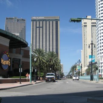 Das Sheraton New Orleans ist ein modernes Hochhaus am Canal Street mit 49 Stockwerken und über 1100 Zimmern. Die meisten Zimmer bieten Blick auf den Mississippi River oder die Skyline der Stadt.