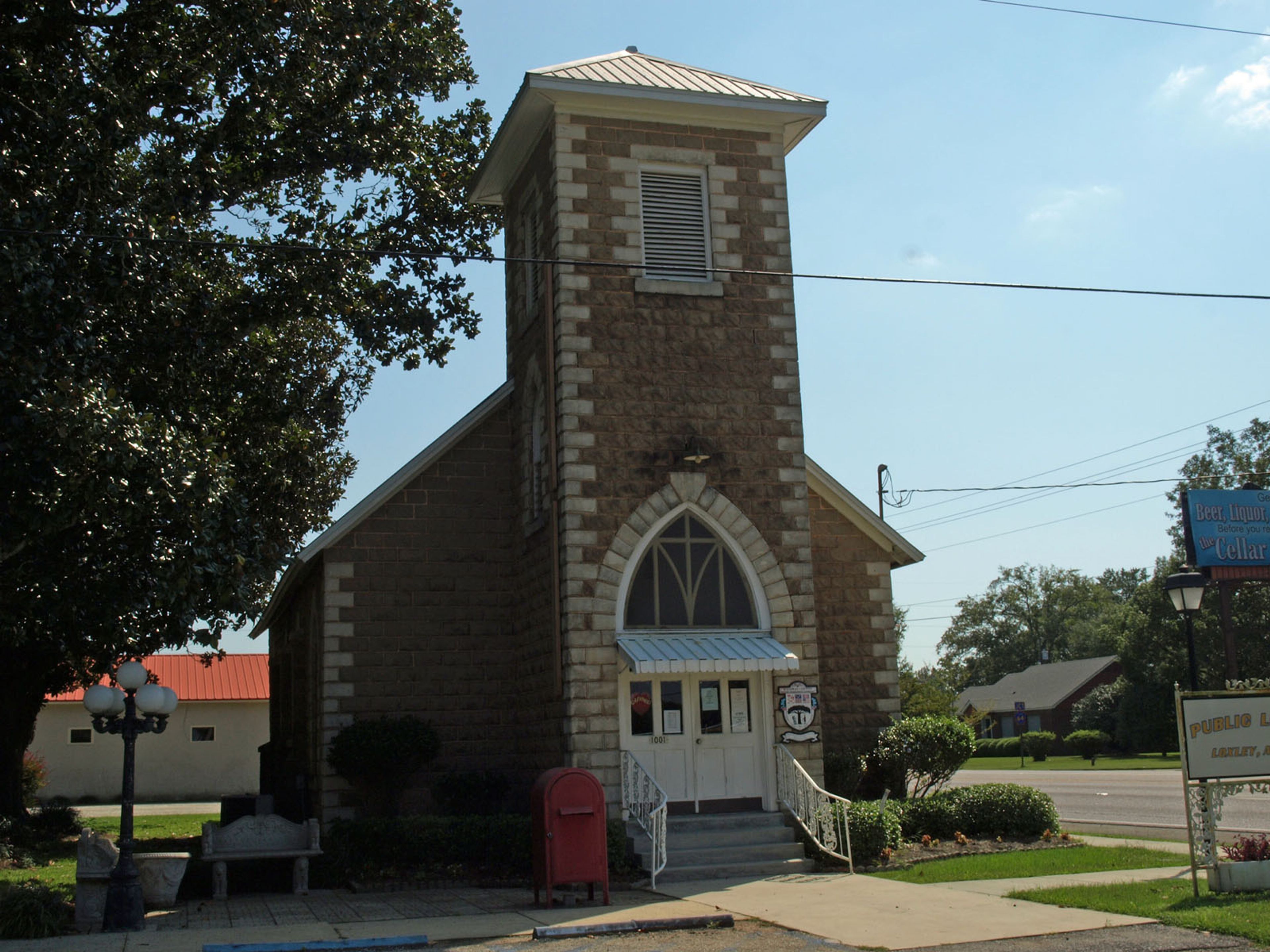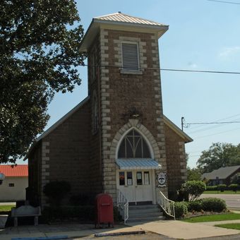 An den Koordinaten 30.619722, -87.752778 gelegen, umfasst das Kirchengrundstück 0.3 Acres Land an der Ostseite der Highway 90.