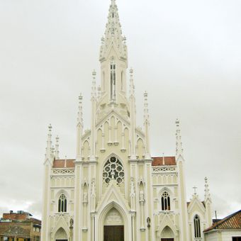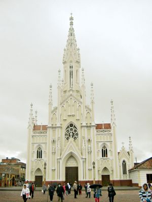 Die Basilika liegt erhöht in Ubaté und verbindet kolumbianisches Handwerk mit traditionellen neugotischen Elementen in ihren ornamentalen Verzierungen.