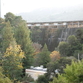 Die Crystal Springs Staumauer erstreckt sich 180 Meter über den San Mateo Creek mit einer 43 Meter hohen Betonkonstruktion.