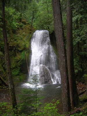 Die Yakso Falls ist ein Wasserfall in der Cascade Range, der sich um einen großen Basaltfelsen teilt und zwei separate Wasserstrahle bildet. Das Wasser fällt etwa 21 Meter tief und spreizt sich dabei über eine Breite auf.