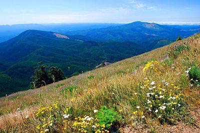 Marys Peak ist der höchste Punkt der Coast Range in Oregon und erreicht eine Höhe von etwa 1.250 Metern. Das Gebiet bietet Aussichten auf den Pazifischen Ozean im Westen und die schneebedeckten Gipfel der Cascade Range im Osten.
