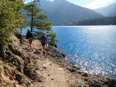 Der Spruce Railroad Trail erstreckt sich über 7.2 Kilometer durch dichte Wälder und entlang des nördlichen Ufers des Lake Crescent, mit zwei restaurierten Eisenbahntunneln.