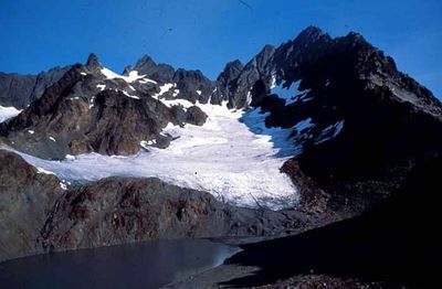 Der Anderson-Gletscher liegt auf einer Höhe zwischen 1900 und 1600 Metern und speist einen See auf 1508 Metern im Olympic National Park.