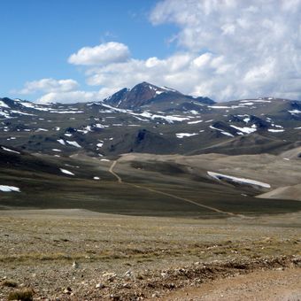 White Mountain Peak ist ein Bergipfel in der Sierra Nevada mit einer Höhe von 4.344 Metern und wird von Sedimentgestein geprägt. Die Landschaft wirkt karg und felsig, mit wenigen Pflanzen, die in dieser Höhenlage überleben können.