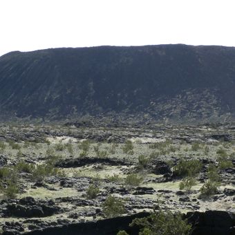 Der Krater erhebt sich 76 Meter über die umliegenden Basaltebenen und enthält einen erstarrten Lavasee in seinem Inneren.