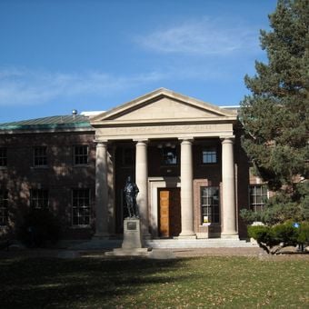 Eine vom Bildhauer Gutzon Borglum geschaffene Statue steht vor dem Gebäude und stellt John Mackay dar, dessen Familie die Institution finanzierte.