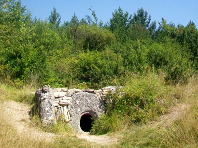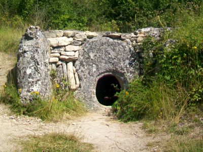 Dieses Galeriegrab enthält eine unterirdische Grabkammer von acht Metern Länge und zwei Metern Breite, die aus Kalksteinplatten konstruiert wurde.