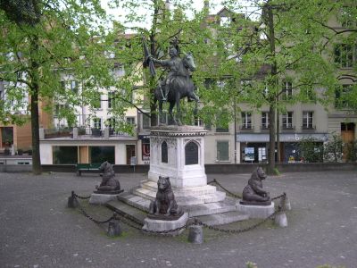 Das 1849 von Joseph Simon Volmar geschaffene Denkmal ehrt Rudolf von Erlach, der die Schweizer Streitkräfte 1339 zum Sieg in der Schlacht bei Laupen führte.
