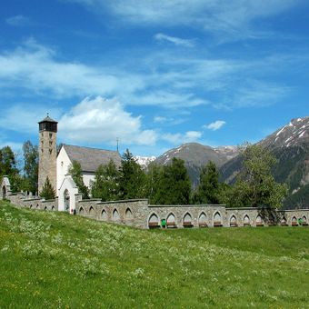 Alte Kirche St. Peter, Protestantisches Kirchengebäude in Samedan, Schweiz.