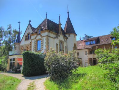 Die Abtei Fontaine-André steht am Fuße des Chaumont-Berges, umgeben von Wäldern, Gärten und Feldern mit Blick auf den Neuenburgersee.