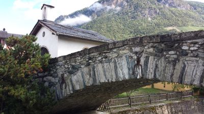 Brücke und Kapelle, Brücke und Kapelle in Bramois im Kanton Wallis, Schweiz