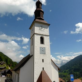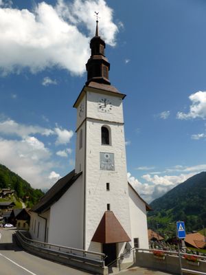 Kirche Saint-Maurice und Glockenturm, Kirchengebäude mit Turm in Val-d'Illiez im Kanton Wallis, Schweiz