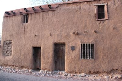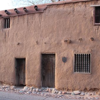 Das Gebäude dient als Handwerksgeschäft und Museum, mit kostenlosen Parkplätzen nahe der Einbahnstraße De Vargas Street.