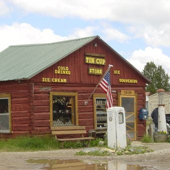 Tincup trägt seinen Namen nach einer Geschichte eines Prospectors namens Jim Taylor, der 1859 Goldstaub in einer Blechdose aus Willow Creek trug. Heute können Besucher im kleinen Laden Souvenirs kaufen oder in Frenchy's Cafe Sandwiches und hausgemachte Kuchen genießen, wo sich die Gemeinschaft im Sommer trifft.