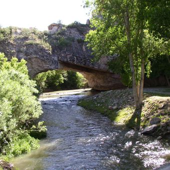 Ayres Natural Bridge Park beherbergt eine natürliche Kalksteinbrücke, die sich über den LaPrele Creek in einem tiefroten Sandsteincanyon spannt. Die Struktur erstreckt sich über etwa 30 Meter und ragt etwa 15 Meter über dem Wasser auf.