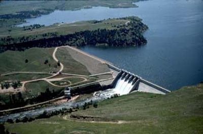 Das Angostura-Staudamm ist ein Erddamm, der den Cheyenne River aufstaut und mit einer Betonstaumauer ausgestattet ist. Die Konstruktion erstreckt sich über eine beachtliche Länge und schaff einen großen Stausee hinter der Anlage.