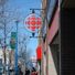 Das Hutchinson-Gebäude zeigt eine pflaumenfarbene Ziegelfassade mit Tyndall-Steinakzenten und große Schaufenster über zwei Etagen.