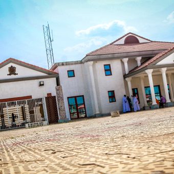 Der Palastkomplex umfasst mehrere Gebäude mit Galerien, Innenhöfen und Zeremonienräumen und dient als Verwaltungszentrum des Königreichs Benin.