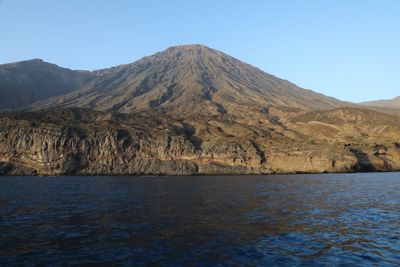 Topo da Coroa ist ein Stratovulkan auf der Insel Santo Antão und erhebt sich auf 1.979 Meter über dem Meeresspiegel. Das Gelande zeigt steile vulkanische Hang und felsiges Terrain mit verschiedenen Schichten geologischer Formationen.