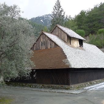 Die orthodoxe Kirche steht an den Hängen des Madari-Gipfels im Troodos-Gebirge, mit einem einzigen Kirchenschiff und einer Kuppel mit kreuzförmigem Dach.