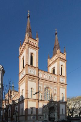 Der Kirchenbau begann im Februar 1848 unter Paul Sprenger, aber die Ungarische Revolution führte zu Änderungen des architektonischen Stils.