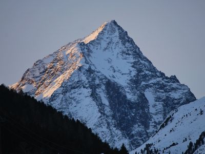 Der Lisenser Fernerkogel erreicht eine Höhe von 3.298 Metern und weist steile Felswände an drei Seiten mit einem Gletscher an seiner Nordflanke auf.