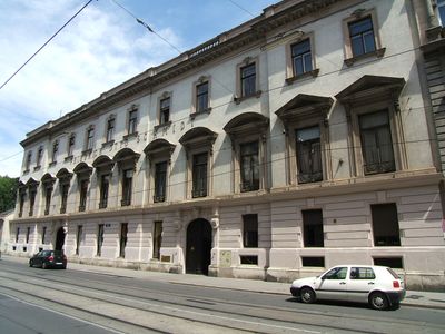 Der Palais Chotek ist ein Renaissance-Revival-Palast im Bezirk Alsergrund in Wien, Österreich. Das Gebäude verfügt über einen breiten Hauptbau mit zwei schmalen Seitenflügeln und eine Fassade mit drei flachen Risaliten und kannellierten Pilastern, die sein klassisches Design prägen.