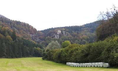 Die Befestigung zeigt einen rechteckigen Bergfried mit erhaltenen Kreuzgewölben und einer mächtigen Ringmauer über dem Murtal.