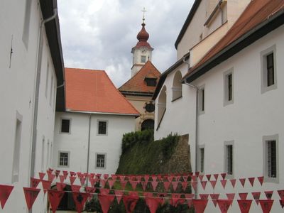 Der zum Pfarrkirche umgewandelte Rittersaal enthält Innenmalereien von Johann Cyriak Hackhofer aus dem Stift Vorau.
