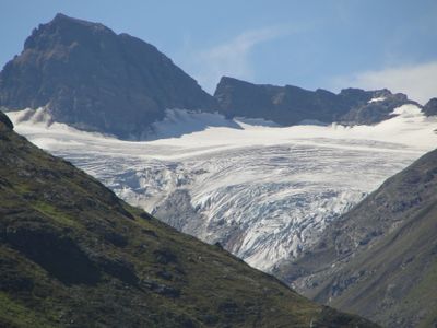 An der Nordseite des Piz Buin Pitschen liegt der Ochsenthaler Gletscher, der die Quelle der Ill auf ihrem Weg zum Rheinbecken bildet.