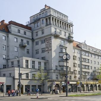 Der Turmbereich weist eine erhöhte Eckerkeranordnung auf, die den nördlichen Eingang zur Wiener Stadtlandschaft markiert.