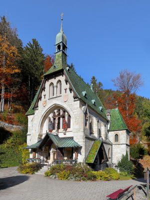 Die Pfarrkirche in Semmering zeigt neugotische Architekturelemente mit einer markanten Fassade und besonderen Innenraumelementen, entworfen von Gustav Neumann.