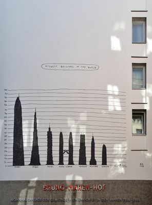 Buildings on Buildings #2, Kunstwerk von Aldo Giannotti am Bruno-Marek-Hof, Wien Mariahilf