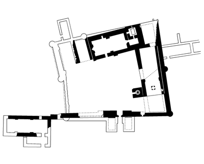 Der Komplex vereint religiöse und militärische Architektur mit einer Moschee, einem Minarett und Sälen für spirituelle Versammlungen.