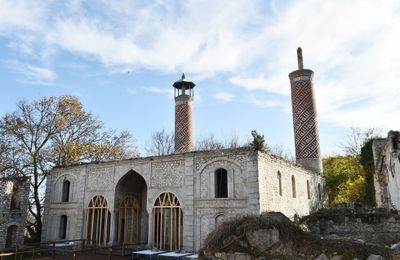 Die Moschee stellt das Gebetszentrum des unteren Bezirks von Shusha dar, mit islamischen Inschriften und geometrischen Mustern auf den Oberflächen.