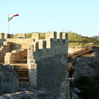 Ovech Fortress ist eine mittelalterliche Befestigungsanlage auf einem Plateau bei Provadia in Bulgarien. Die Struktur besteht aus Steinmauern und Türmen, die auf natürlichen Felsformationen aufgebaut sind und sich mehrere Meter über die umliegende Landschaft erheben.
