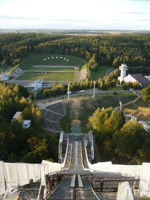 Das Republikanische Olympische Trainingszentrum erstreckt sich über 20.5 Kilometer befahrbares Gelände mit Bereichen für Biathlon, Skispringen und Langlauf.