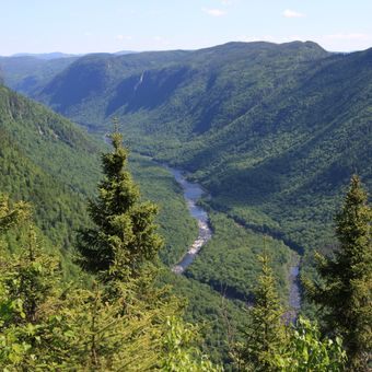 Das Jacques-Cartier-Tal erstreckt sich durch Bergplateaus mit tiefen Gletscherformationen, wo der Fluss zwischen Stromschnellen und ruhigen Abschnitten wechselt.