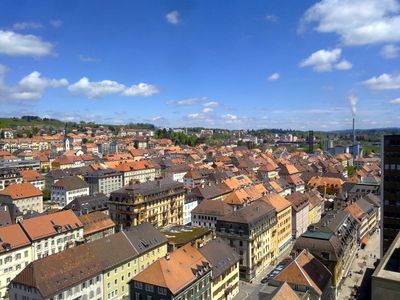 La Chaux-de-Fonds ist eine Stadt im Kanton Neuenburg der westlichen Schweiz, die sich auf einem Hochplateau im Jura auf knapp 1000 Metern Höhe ausdehnt. Sie bildet ein schachbrettartiges Straßennetz aus breiten Achsen, an denen sich Wohn- und Gewerbebauten der Uhrenindustrie aufreihen.
