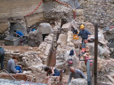 Ausgrabungen im Jahr 2020 förderten erhaltene Holzbalken und eine intakte römische Badeanlage aus der Zeit vor 2000 Jahren unter dem heutigen Straßenniveau zutage.