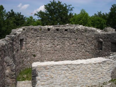 Die Alt-Wartburg besteht aus einem Wohnturm und einem ummauerten Hof auf einem südlichen Gipfel, mit Überresten mittelalterlicher Befestigungen.