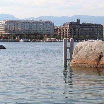 Diese Steine liegen nahe am Quai Gustave-Ador am linken Seeufer und sind von dort aus gut zu sehen. Die beste Sicht hat man von der Uferpromenade aus, besonders bei ruhigem Wasser.