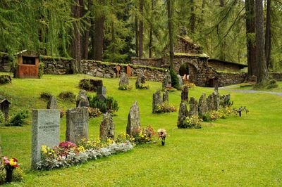 Der Friedhof verbindet Elemente des Alpenwaldes mit Begräbnisstätten und schafft einen natürlichen Gedenkraum in einer der höchsten Lagen der Schweiz.
