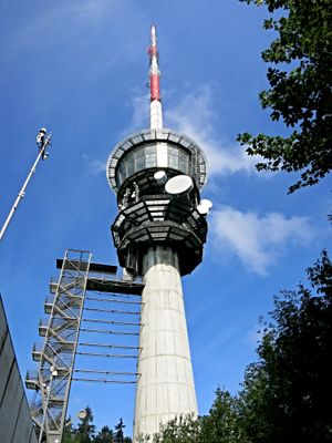 Der Bau des Turms begann 1991 als Ersatz für einen 100 Meter hohen Radioturm von 1954 und wurde 1997 fertiggestellt und eingeweiht.