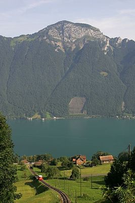 Die Standseilbahn verkehrt mit einer Maximalsteigung von 38 Prozent und bietet direkten Zugang zu regionalen Wanderwegen und Badestellen am Seelisberger Seeli.