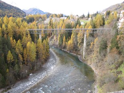 Die 1905 erbaute Brücke mit drei Bögen zeigt die Ingenieurskunst des frühen zwanzigsten Jahrhunderts in den Schweizer Berggemeinden.