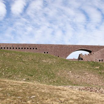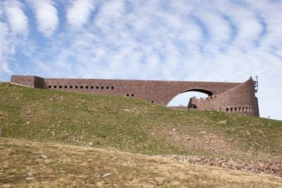 Das Gebäude verfügt über einen langen Betonweg, der sich von der Bergstation erstreckt und Besucher durch einen vorbereitenden Durchgang führt.
