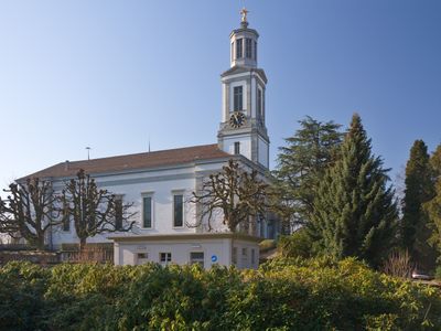 Neumünster, Klassizistische Kirche im Quartier Riesbach, Schweiz